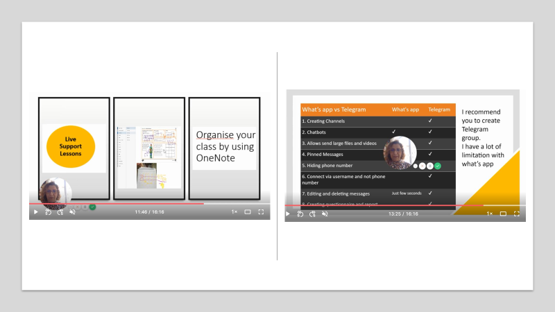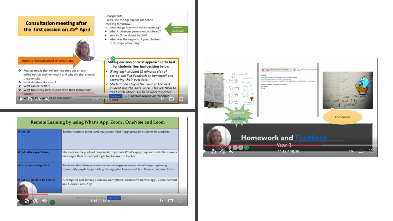 In terms of individual needs, Mogjan designs different activities for homework and holds a pre-recorded session on Loom to give each child extra support to understand the learning concept. She has found 15 minute sessions with each individual child to be more effective as parents are present at the session and she is able to focus exclusively on each child’s questions. She uses One Note to organise each lesson for each child and record their progress. At the end of our discussion, she explained the differences between the Telegram and WhatsApp applications.